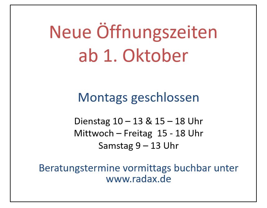 Leider können wir aktuell keine Fahrräder zur Reparatur oder Wartung annehmen, die nicht bei Radax gekauft wurden.